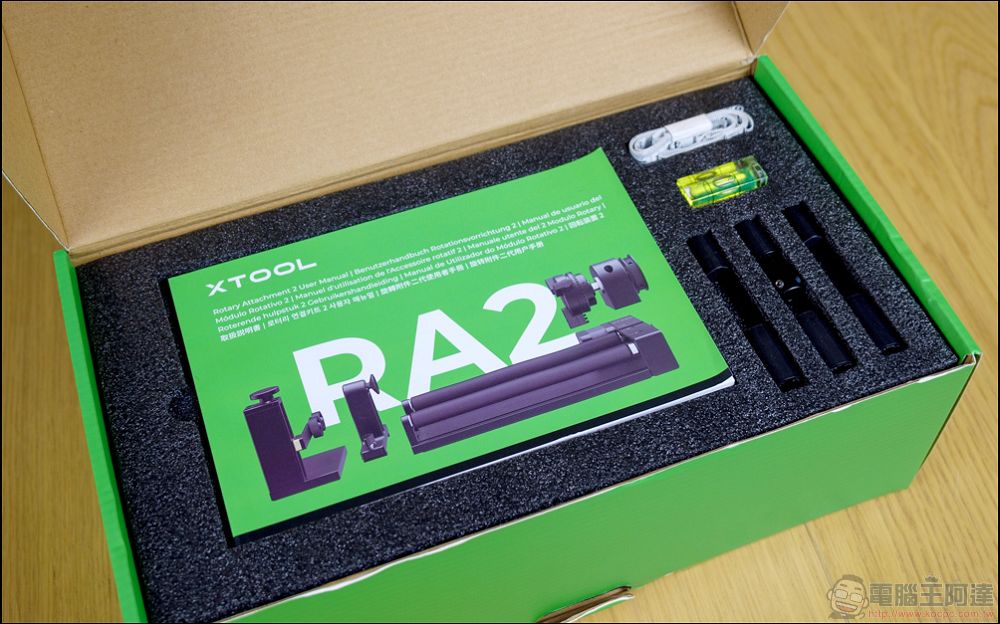 接著左邊的盒子裡面就是放著這次全新的xTool RA2 Pro旋轉套件: