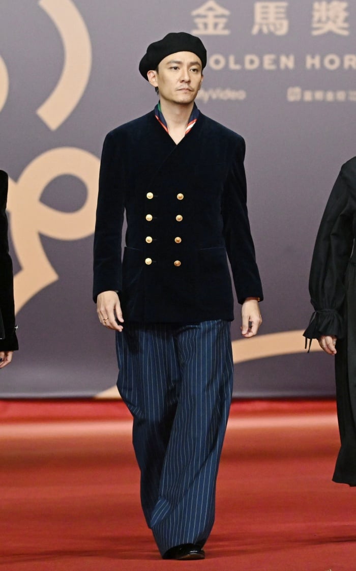 在今年金馬獎擔任評審團主席的張震,果然依舊穩穩稱霸紅毯!這次穿上了GUCCI 2023春夏系列深藍色雙排釦絨面外套,下身搭配的是寬鬆落地藍色條紋直筒西裝褲,頭上搭配的是超有特色的貝蕾帽與領巾,妥妥的帥暈全網張震風格!