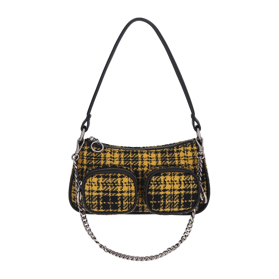 當格紋碰撞金屬鏈條,一下就把格紋學院風推向Y2K風格靠攏!這款腋下包上身就十分吸睛!裝飾性的金屬鏈條和包身上兩個立體的造型口袋,像是帥氣機車包融合經典格紋元素,最適合喜歡與眾不同的酷女孩!(官網建議售價: NTD$2290。)