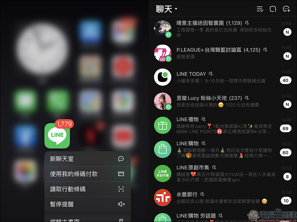 一旦將 LINE 社群的「不顯示未讀訊息數」功能開啟,接著 LINE 社群的未讀訊息數量就會直接轉換為「N」,不再是真正的為未讀訊息會顯示所有未讀的訊息則數。同時眼尖讀者應該留意到,當筆者將 LINE 社群經過簡單設定後。 LINE 的未讀訊息量較大幅減少了。