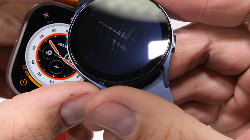 [caption id="attachment_471273" align="alignnone" width="1000"]雖然如此,其實這在 Galaxy Watch 5 也有類似的測試結果,而 Apple Watch Ultra 在 6 級與 7 級的磨損相較之下更明顯, Zack Nelson 也解釋可能是因為材料中的雜質與拋光問題。