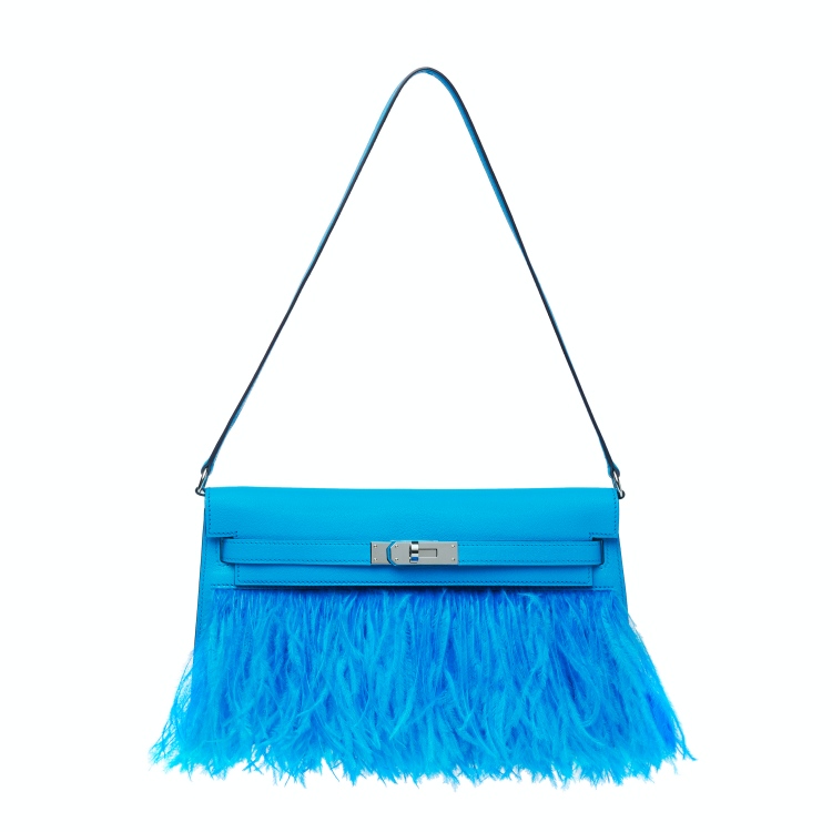 Hermès 除了在皮革的面料上用盡心思,在本季品牌也在凱莉包的外型上做了更大膽的突破!這款「Kelly élan」以細緻的山羊皮為主要面料,並在包身上點綴了具有飄逸感的駝鳥羽毛,隨著模特兒的步伐,羽毛擺動的瞬間不只讓包款擁有輕盈感,整體的流動性讓這款長型的肩背包像是擁有生命般具有靈性!