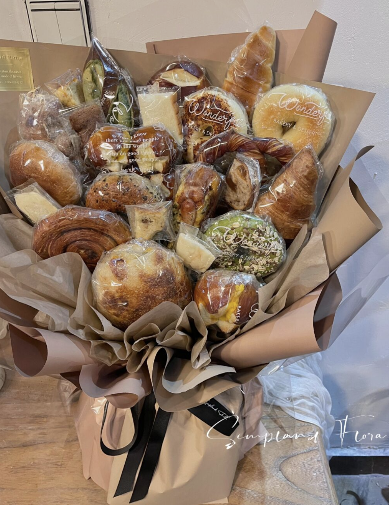 SIS們是否也覺得收到另一半送的花束是一件很浪漫的事呢?然而比起會凋謝的花而言,近年來也流行起許多創意花束~像是可以永久存放的永生花、讓長輩們開心的有錢花等等⋯⋯今天要來介紹的則是吃貨嗎收到都會開心的「法式麵包花束」!