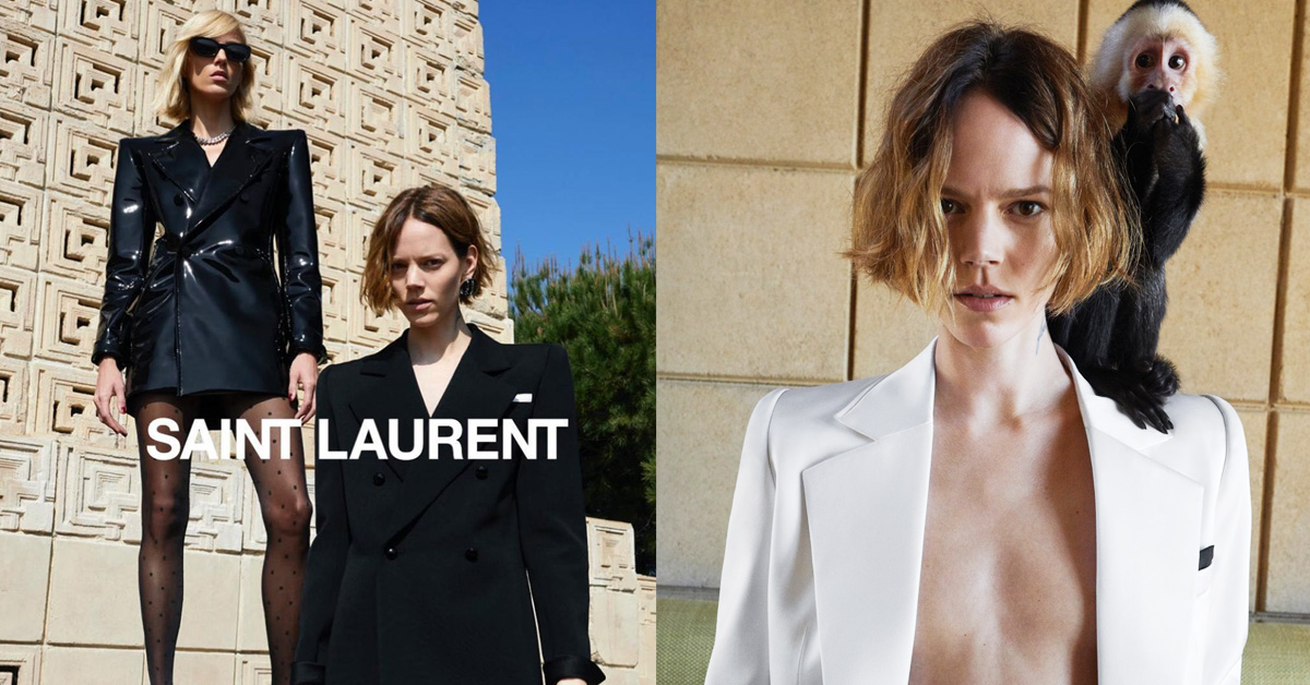 近期已鮮少曝光的兩大帥模Anja Rubik與Freja Beha Erichsen,再加上還有一隻猴子,在攝影大師Juergen Teller的召喚之下,擔綱出演今年YSL的秋冬形象廣告,是一種帶著酷味的奇妙感!
