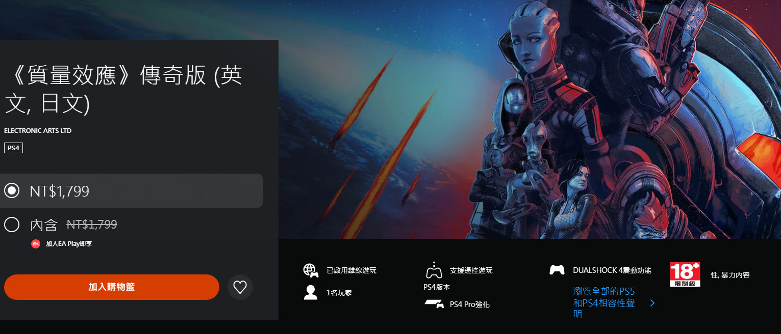 《質量效應》傳奇版包含所有《質量效應》、《質量效應 2》和《質量效應 3》遊戲的單機主遊戲內容與超過 40 款 DLC,玩家可在經重製與 4K 超高畫質優化的畫面中,重溫指揮官薛普的傳奇故事,在遊戲中,你的抉擇會對行動和結果有重大的影響,目前於PlayStation Store的價格為1799元。