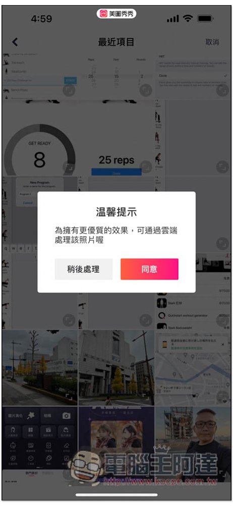 首次會跳出這個訊息,建議在雲端處理,沒問題就按同意,然後選擇你要處理的照片: