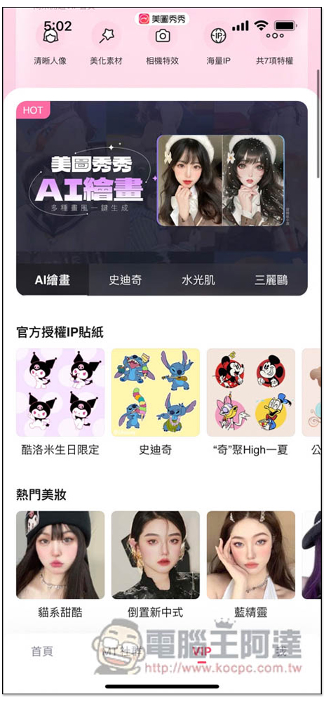 另外 AI 繪圖也能在底部的 VIP 選單中找到,不確定未來會不會收費,想玩的朋友趕快試試: