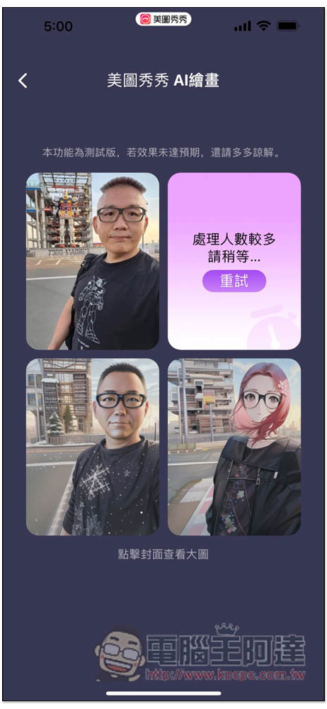 另外如果出現「處理人數較多,請稍等...」的訊息,點擊重試就會再次處理了: