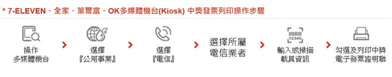 2.持該期帳單上的載具號碼至四大超商多媒體機台列印中獎電子發票證明聯: