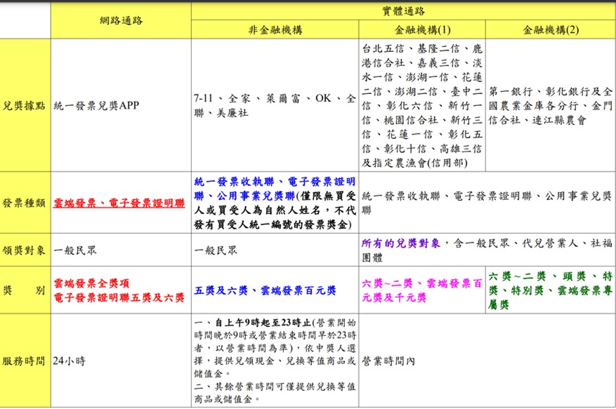 取得中獎之電子發票證明聯後,即可依中獎金額到統一發票實體通路兌獎據點兌獎(同實體發票)。