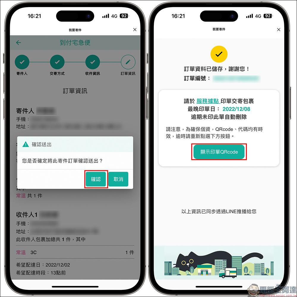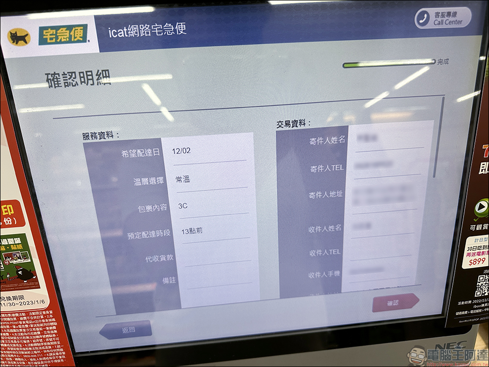 送出託運單前,再次確認一下收件資訊是否正確,如果都沒問題就可將訂單送出。