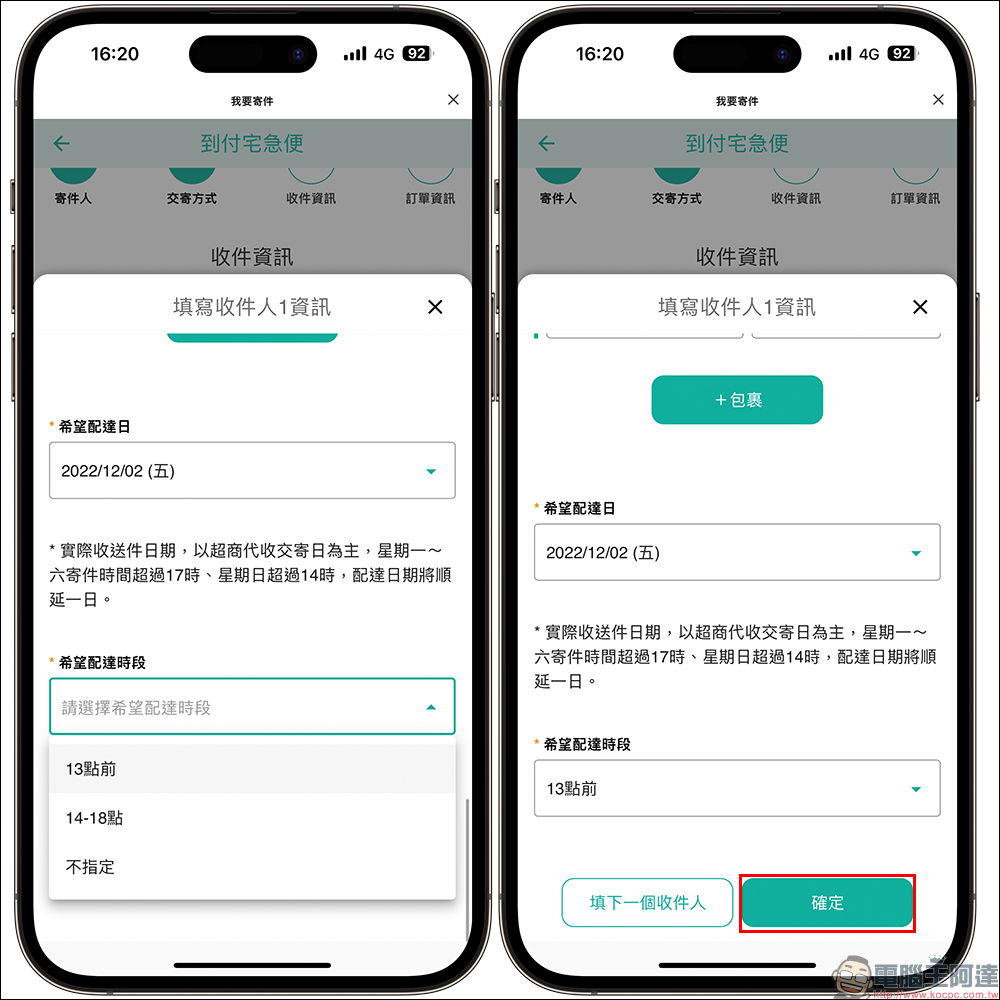 接著就能選擇希望配送到達的日期與時段,實際的到件時間還是依照物流的安排。