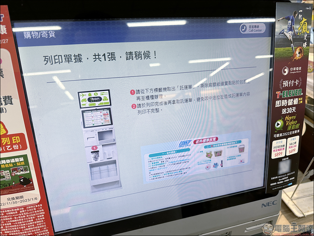 這時候 ibon 列印出託運單,就在螢幕下方的位置。