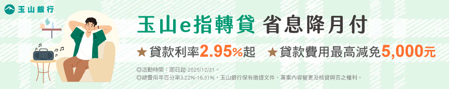 玉山銀行 | e指信貸 | 2000元起 | 2.95%起 | 500萬 | 3.22%~16.31% |