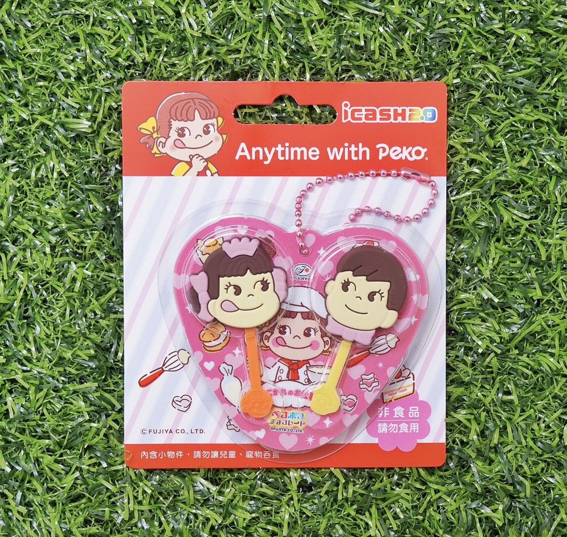Peko絕對是大家的童年回憶!這次重磅推出「不二家娃娃可可icash2.0」,以經典的人物Peko、Poko造型可可棒設計,加上愛心塑膠包裝,外觀參考實品如實還原,連塑膠棒尾端也忠實呈現,還可以拿來蓋章,真的擬真度百分百,icash2.0晶片位於背面的愛心造型卡片中,還附上吊飾,能掛在包包或鑰匙圈上。