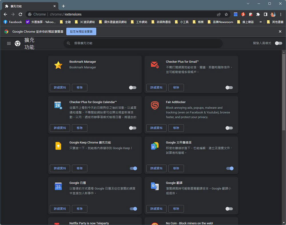 你可能經常用瀏覽器,然後感覺瀏覽器有點慢。這時候建議你盡可能減少使用瀏覽器擴展應用或附加元件,因為這些東西會減慢你的網頁瀏覽器速度並導致它們佔用更多記憶體。進入瀏覽器的擴展或附加元件管理介面,將不需要的附加元件禁用或刪除。