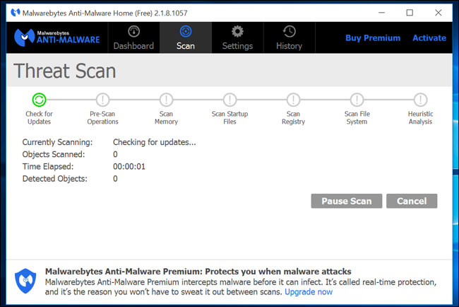 你的電腦運行緩慢也有可能背景運行的惡意軟體在作祟,當然還有一種可能是干擾並追蹤網路瀏覽以添加廣告的其他軟體。為了提高安全性,可以用可靠的防毒程式掃過電腦,還可以用像 Malwarebytes (免費板就夠了)這類的軟體來掃描,以捕獲大多數防毒程式傾向於忽略的潛在性有害程式(PUP)。當你在安裝軟體時,這類程式會試著潛入你的電腦,而你幾乎根本不需要它們。