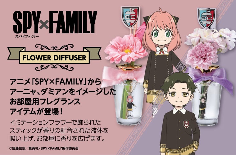 被譽為現象級動漫的《間諜家家酒》,劇情描繪了間諜爸爸、殺手媽媽、超能力女兒的有趣日常,其中女兒安妮亞的校園生活更備受矚目,尤其是遇上暈船次子達米安後(笑)。這回日本專製原創商品的郵購網站「ShoPro Mall Selection(ShoPro Mallセレクション)」也為這對可愛的小情侶(?)設計了成對的擴香瓶!