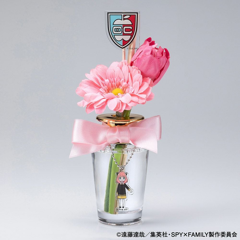 一直展現滿滿元氣及豐富可愛表情的安妮亞,擴香瓶上的花朵也以她的形象做搭配,選擇了粉色系的花種!擴香的香氣是種讓人聞了煥然一新的香調,而瓶口也繫上了專屬的粉色緞帶及安妮亞壓克力小吊飾。擴香棒則使用自然的原色,更有伊甸學園的校徽作點綴!擺在家裡真的超少女(比心)。