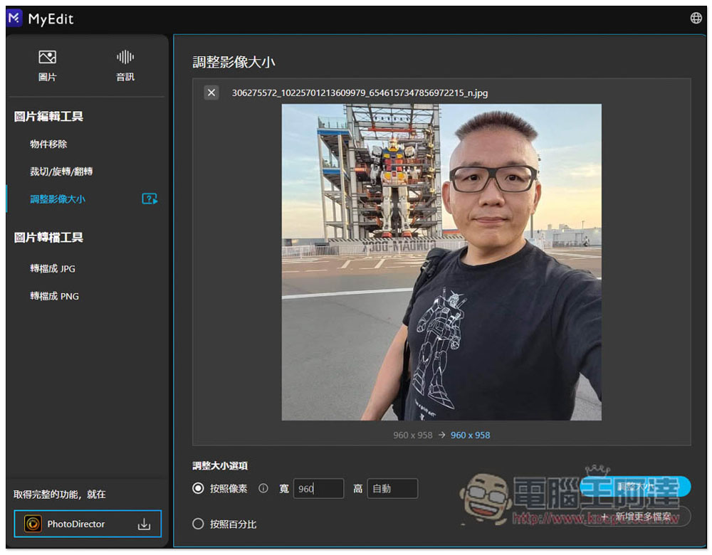 MyEdit 是一款由訊連推出的免費線上、圖片編輯工具,一些常用的功能都有,像是調整圖片、轉檔格式、變聲器、去除人聲、剪輯音樂等等,速度都非常快,對於偶爾有這類需求的朋友,很值得收藏起來,無廣告且完全免費,而且處理完的圖片也沒有浮水印。