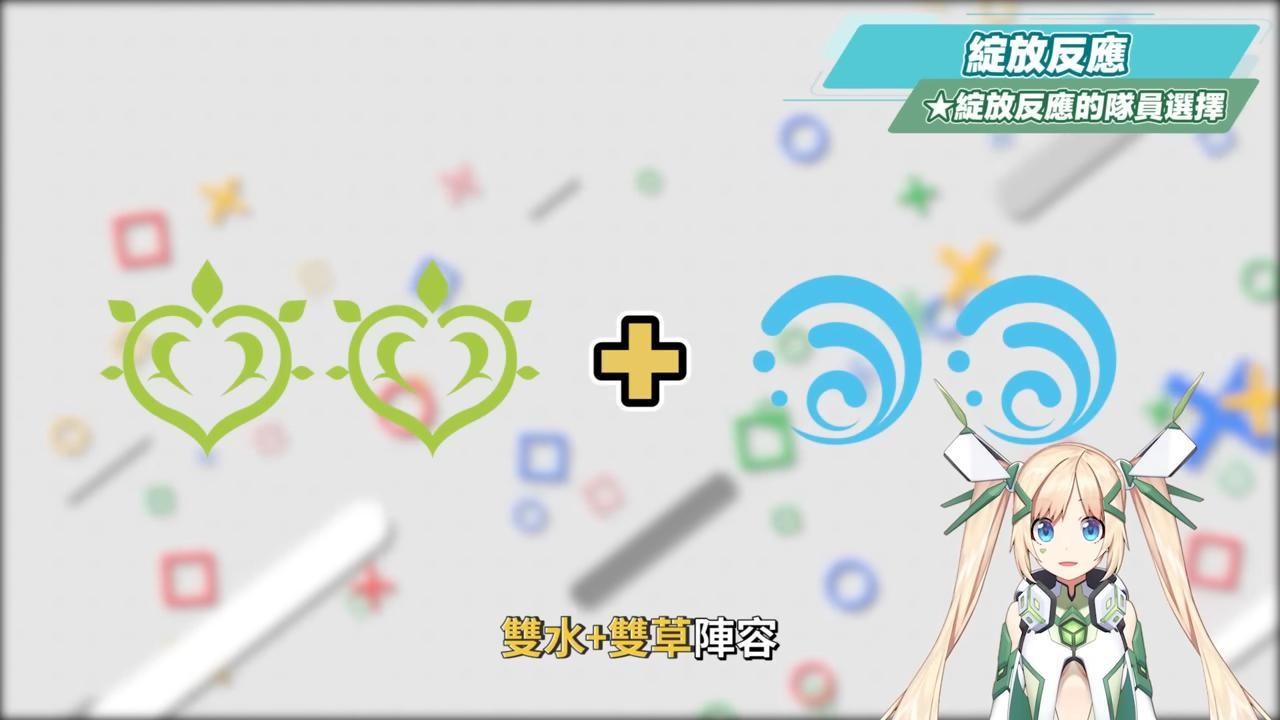懶人包的意思就是只要能夠穩定且高頻率的持續上雷、上水、上草,這樣在實戰中就可以一直打出前面的六種綜合反應。確保三種元素的存量都足夠,哪邊不夠就輪流切角補元素就可以了。