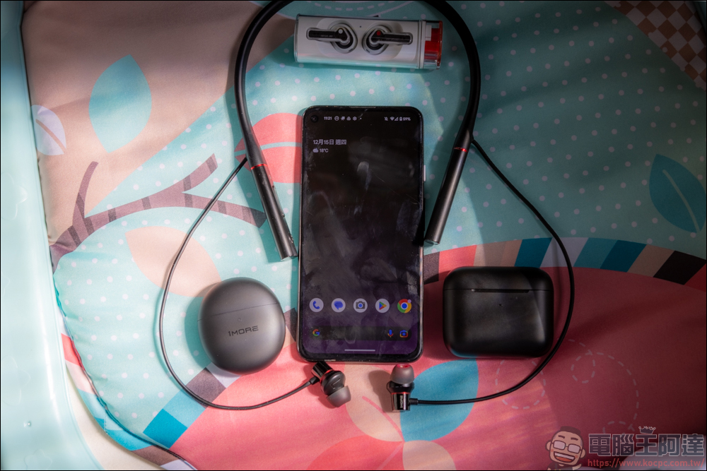 這次要測試用的手機是使用 Google Pixel 4a,要測試的耳機有 Nothing Ear(stick)、1MORE ColorBuds 2、1MORE 高清降噪圈鐵藍牙耳機 PRO 版、Razer Hammerhead True Wireless 2021: