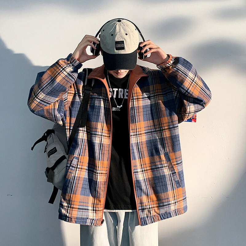 雙面外套推薦8.樂天時尚 日系潮流格子潮牌寬鬆工裝夾克
