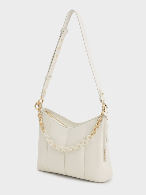 Aralia 大型軟質側背包鋪棉包款是近年超夯的必敗的包款,運用金屬與奶油色皮革的完美組合搭配,低調展現出華麗質感,附上俏麗的鍊條手提,可以隨心情變換手提或斜背、側背,讓你造型可以相當百搭。裡頭的收納空間相當的足夠,是讓你上班、逛街都適用的實用包款,相當值得購入喔!
