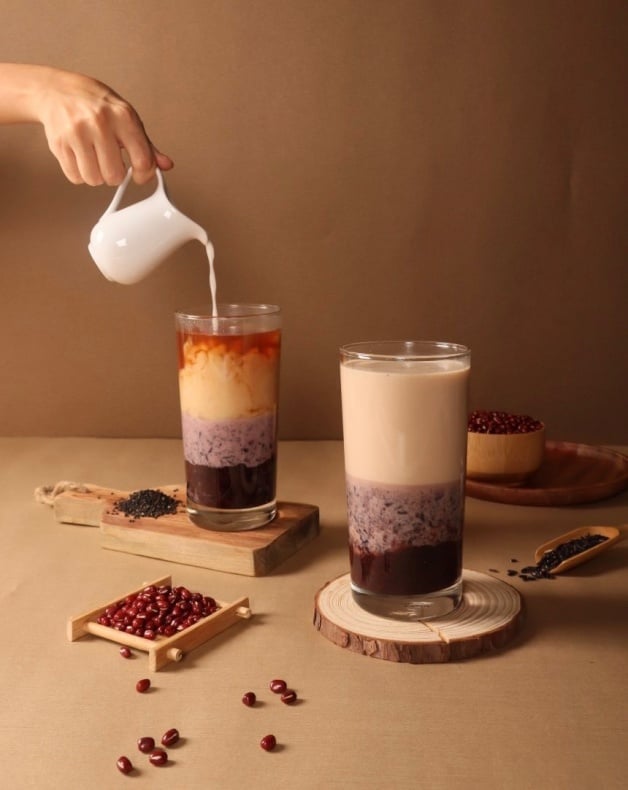 冬季限定飲品「相思芝米奶茶」以老賴茶棧招牌奶茶為基底,加入芝麻、紅豆紫米調配,「相思芝米后乳」則以太后牛乳為基底,同樣佐以配料芝麻和紅豆紫米,口感豐富又有飽足感,來店購買新系列兩杯可現折15元!