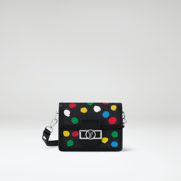 在 2019 年早春初次問世的「Dauphine」,是設計師 Nicolas Ghesquière 取自品牌過往歷史檔案為靈感所設計的包款,復古與都會感並存的風格,成功搶下少女的荷包,本此運用全黑的方式搭配採色圓點呈現,讓其包款變得可鹽可甜,什麼風格都能搭!