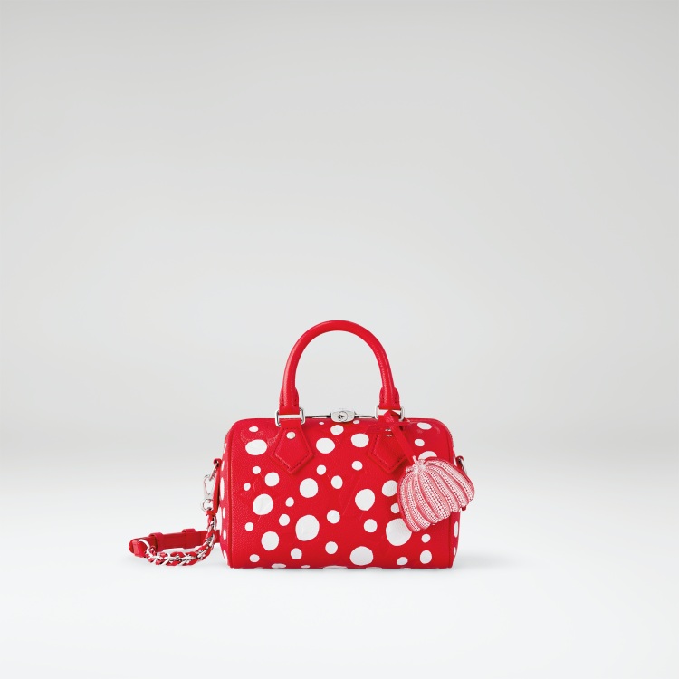 「Speedy」身為品牌最經典的包款,在本次的聯名中以精巧的尺寸登場!在包身上延續紅白圓點的方式呈現,值得一提的是其背帶的用色為呼應包身色彩,亦將金屬鍊條以雙色的形式呈現,讓包款整體更具有完整性。