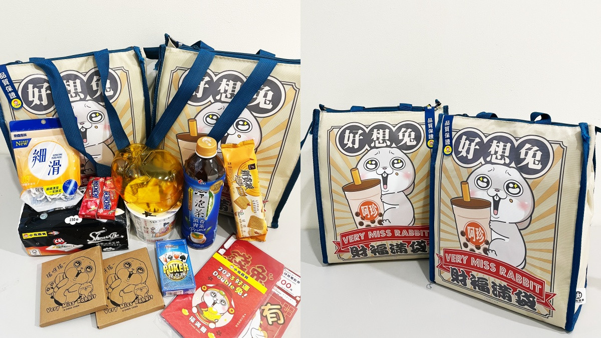 萌度破表的「好想兔福滿袋」內容物搶先曝光!每組售價399元,內含總價值超過770元商品!除了有隨機贈送的好想兔超萌周邊、特製版好想兔春節紅包袋、斗方春聯、生活用品,還有好運福滿籤抽獎券等好禮,福袋採用高保溫保冷的環保造型提袋,不管是出門購物或是當作收納袋都非常方便,走到哪都有好想兔的陪伴~