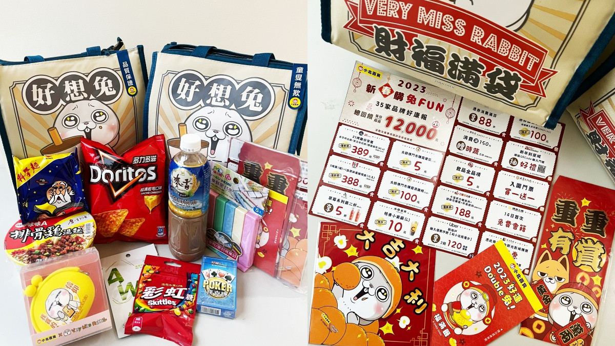 好想兔粉絲看過來!小北百貨為歡慶2023兔年到來,這次攜手LINE官方人氣貼圖「好想兔」,推出超值限量5.4萬份的「好想兔福滿袋」,除了有各種實用的超萌小物,開袋還加碼抽萬元現金、休旅車和免費住宿等好禮,新的一年趕緊來與好想兔試手氣抽大獎吧!