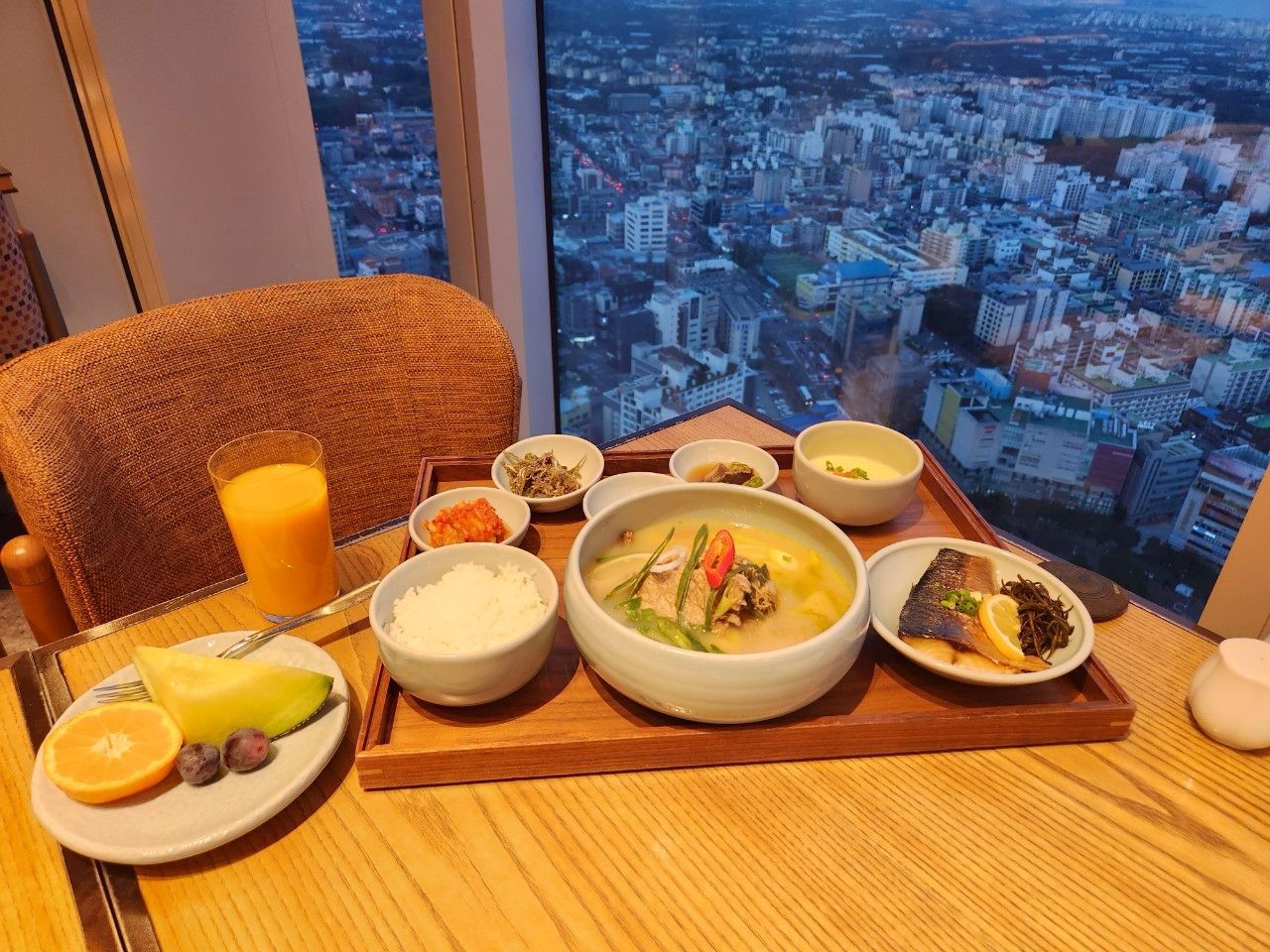 早餐的部分妞編輯首推38樓的「Pocha 本地餐廳」,於高處眺望清晨的濟州島天際線的同時,還能品嘗到高級的韓式早午餐,推薦前天晚上玩太瘋宿醉的妞妞,隔天可以來這邊喝幾碗醒酒湯,絕對能馬上恢復活力~同樣位於樓頂的「Steak House 牛排館」,特製三套絕美的早午餐,班尼迪克蛋、煙燻鮭魚以及波士頓龍蝦通通能在這裡吃得到。(7道韓國解酒料理推薦!「曉鐘羹」奢華貴族料理,白鍾元特製「解酒泡麵」)