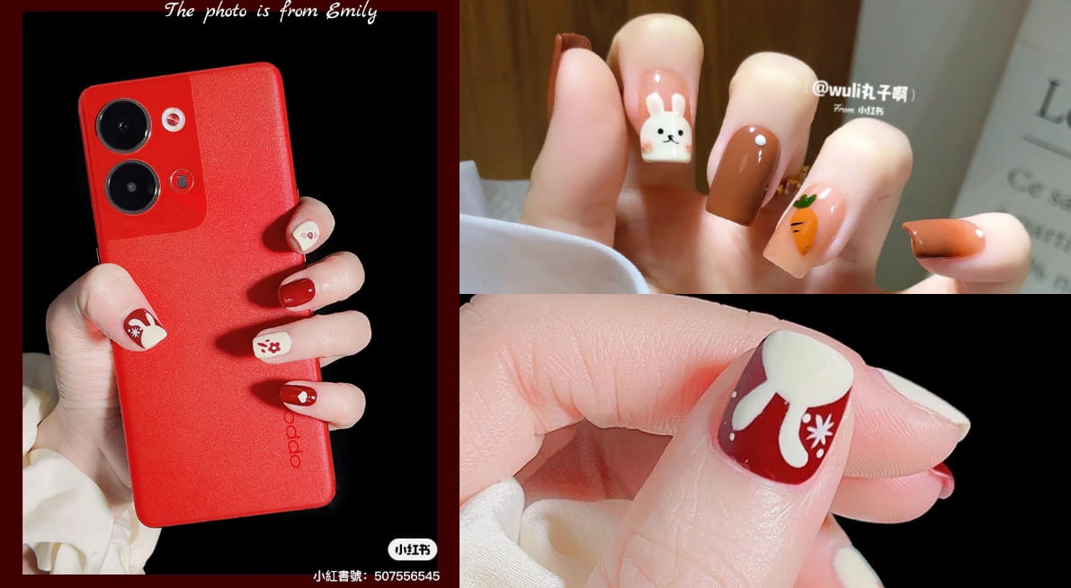 迎接兔年的到來,溫柔女孩可有福了!兔子元素一直式美甲師們愛用的造型小驚喜,而23年順理成章成為美甲的主角!不論是紅底白兔展現兔子的輪廓,為簡約注入新意;還是以粉橘色、粉玫瑰色作為核心,點綴上小兔子臉蛋,都很可愛討喜喔!