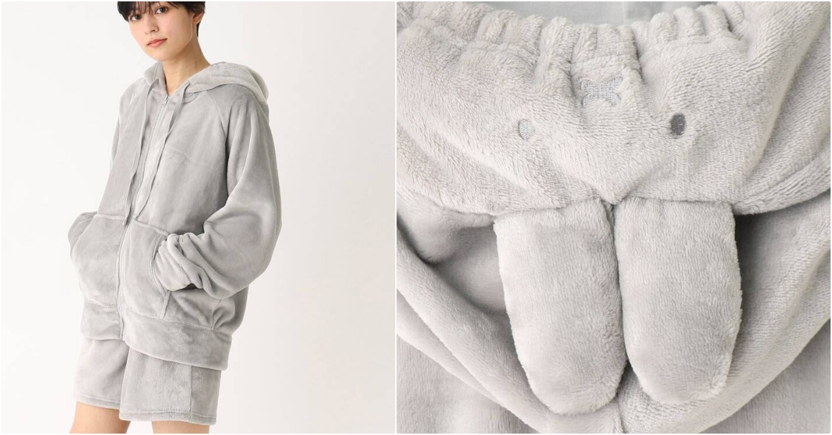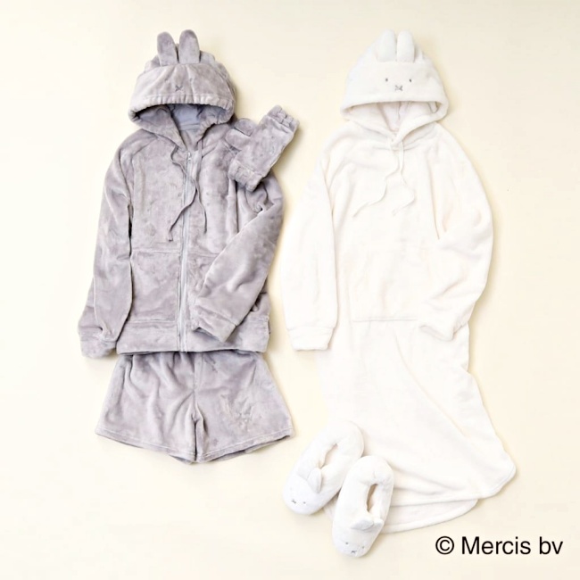 這波聯名也推出多款居家系列,短褲居家SET以及洋裝的帽子上,依舊有米菲兔的身影,招牌耳朵也立體實體化,另外毛茸茸髮帶、拖鞋也超犯規,就像把兔兔直接穿腳上、戴頭上,讓你被萌(暖)到不想出門了~