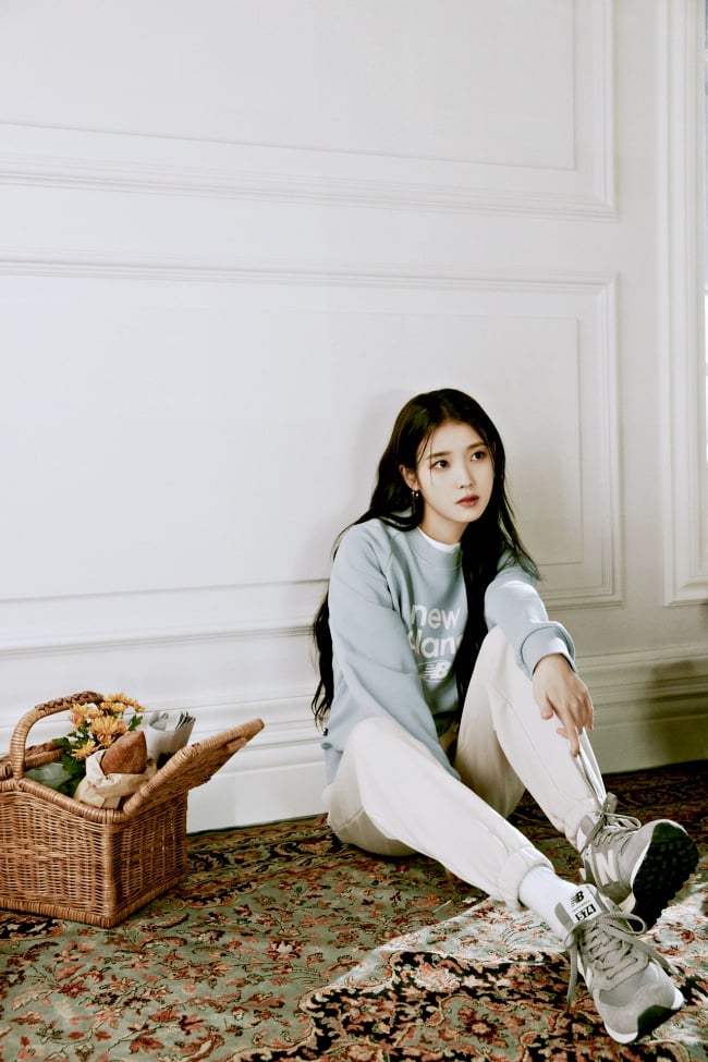 已經拿好野餐籃準備出發的女神,腳上那雙新歡也成為關注焦點!飽和度低、透明感十足的藍灰鞋身,加上「奶油白招牌N字LOGO」,IU年末欽點的就是New Balance爆款574鞋的最新春季配色。