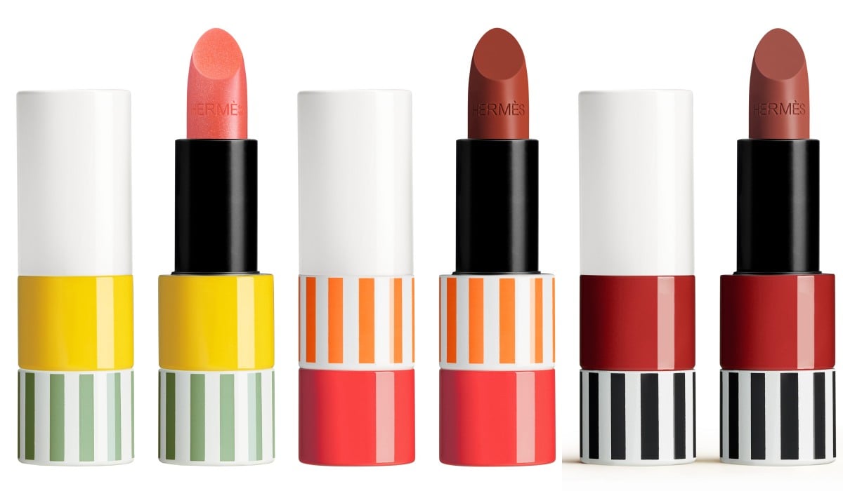 Rouge Hermès 唇膏推出春夏限定版,唇膏管均由皮埃爾· 哈迪(Pierre Hardy)設計,首次採用條紋設計,展現出極致清新的夏日風格。共有3個色選,這具有獨特配方,可為雙唇帶來晶瑩透亮效果,第一款以鮮麗的珊瑚紅點亮雙唇,第二款為紅褐色,讓雙唇煥發烈陽般的明媚光彩。第三款則是略帶粉色的米色,就好像陽光逐漸退卻時的夏日暮色。