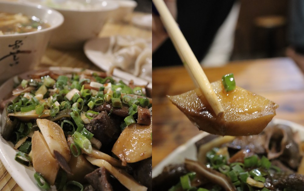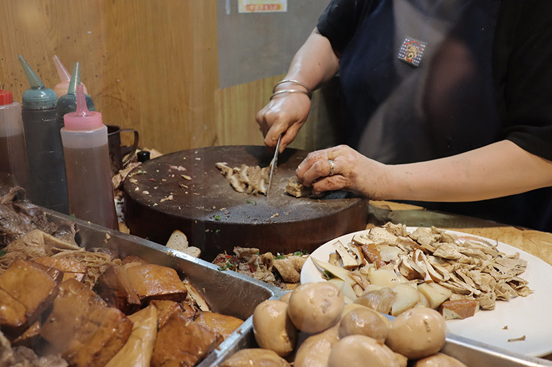 在進店門前,會先看到滿滿滷味山,這也是他們家的一大主打,更被盛讚風頭絕對搶過水餃的光芒。品項眾多,最推薦竹筍、豬耳朵、豆皮、胗、海帶,各個可都是入味到不行,口味不會太死鹹。但依舊保有每個食材的個人特色,像是少見的「竹筍」不會因為滷久而變乾或是走味,依然帶有竹筍的清香甘甜味。超難入味的「胗」在吃得到醬汁香氣的同時,你也依舊能吃到細緻且扎實的肉質!