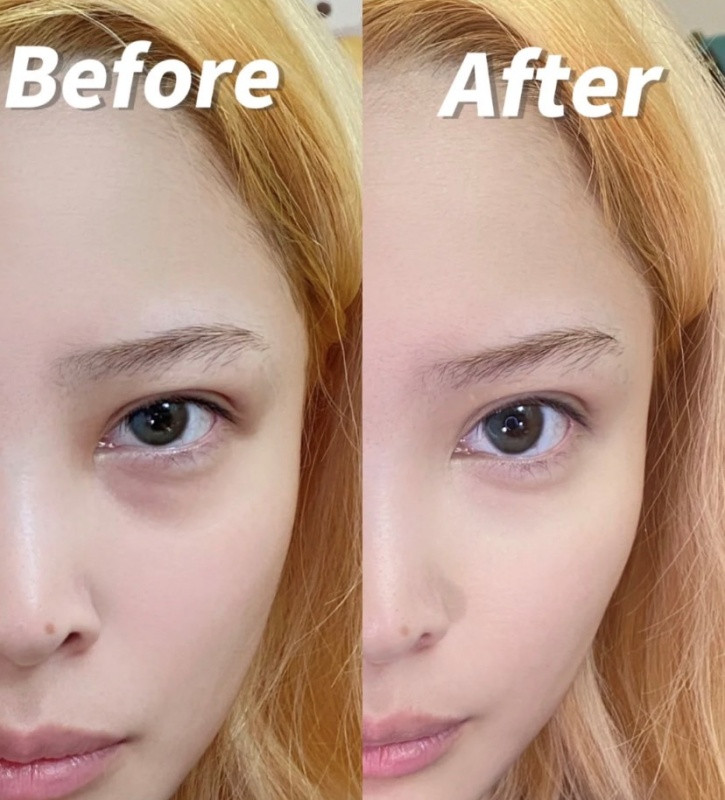 經過前面幾個步驟,仔細觀察就會發現原本的黑眼圈、淚溝幾乎都消失了~整個人瞬間看起來年輕5歲,以後趕著出門,就算懶得畫底妝,也可以試試三點遮瑕法,偽素顏出門也不怕啦~