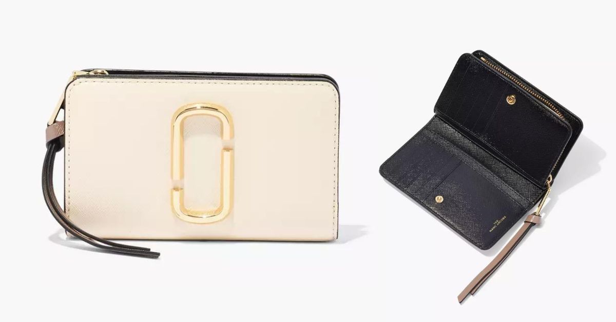 以摩登、新穎的設計備受年輕女孩喜愛的 Marc Jacobs,除了相機包外,各種皮夾也是熱銷品項!由經典的雙 J 標誌為主題,識別度非常高,採用十字壓紋皮革,硬挺耐用。共有10個卡片夾層、側邊的拉鍊口袋讓你拿取零錢更加方便! (官網建議售價:6,300 元。)