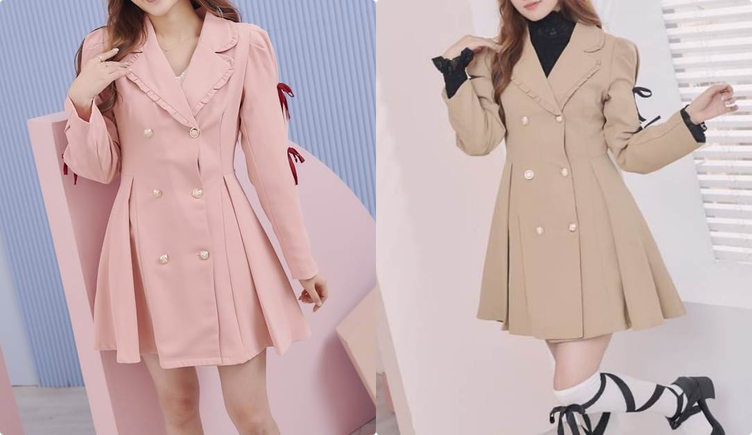 冷冷的天氣,就需要這種溫暖的毛呢外套來禦寒。毛呢外套的布料硬挺,穿起來顯瘦,不像羽絨外套那樣會顯得臃腫,穿上後的身材比例看起來也會很好。這件毛呢外套從領子一直延伸到手臂跟後背都做了細緻的荷葉設計,有點女僕裝的感覺,增加了俏皮可愛感,而且外套的顏色也很粉嫩,一路穿到春天賞花也不成問題。