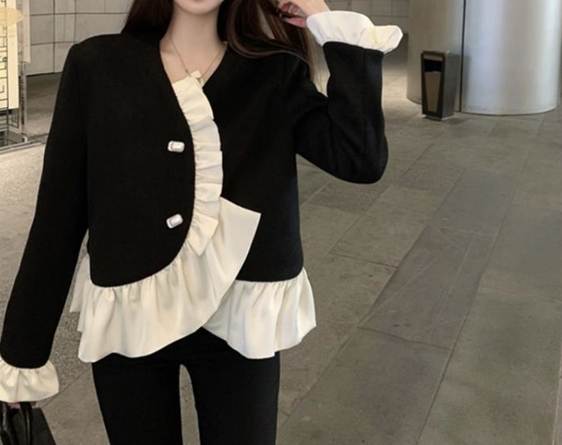 荷葉設計大衣推薦八:正韓拼接荷葉邊毛呢外套
