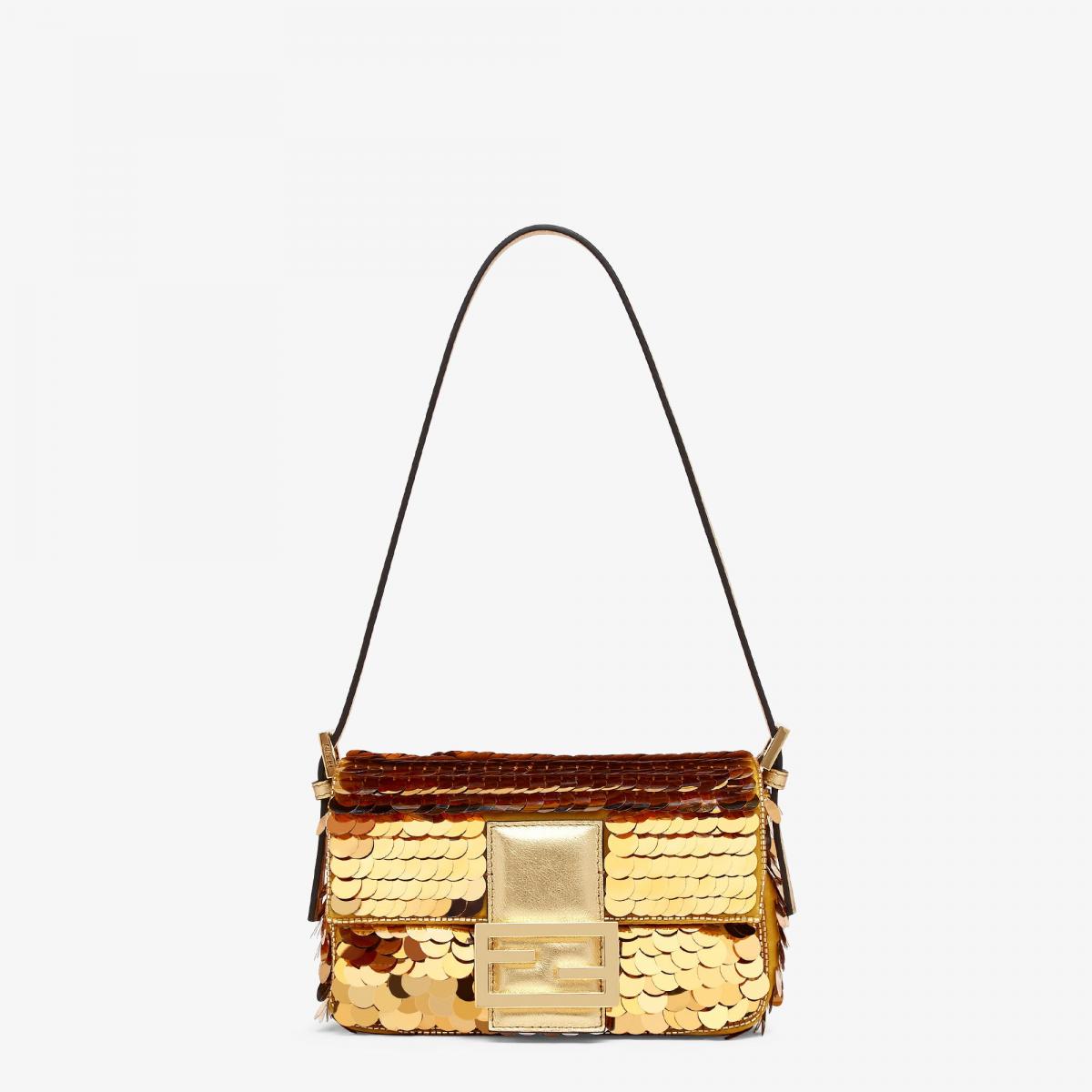 「Baguette」陪伴時尚迷走過25個年頭,不時就能看見明星揹上他被街拍到,其中飾演《慾望城市》的女演員Sarah Jessica Parker基本上跟這個包快要齊名,而Fendi將這個包刺繡上亮片,搭配FF Logo磁扣,新年靠它點亮自己!(參考售價:NT$98,000)