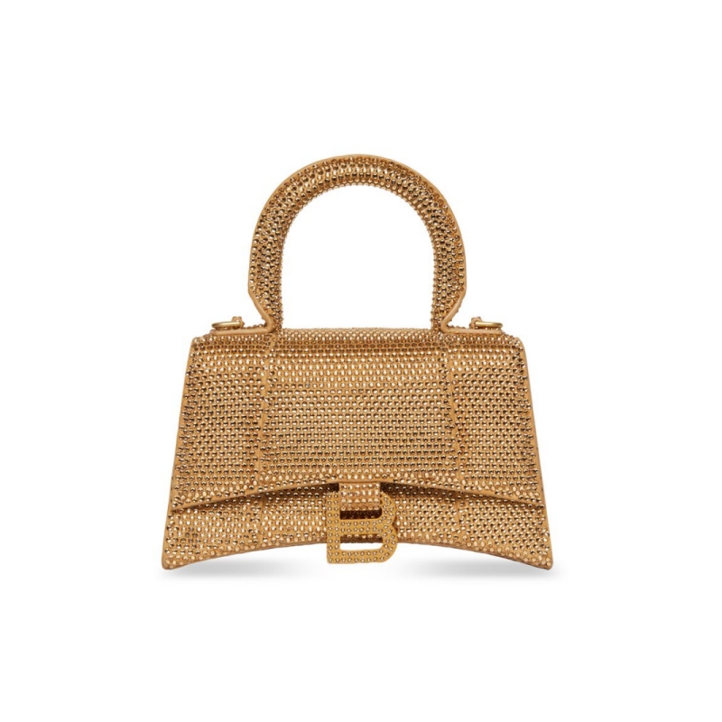 Balenciaga近期重返高級訂製服舞台,高訂的靈魂一直流淌在品牌的血液之中,比如這款「Hourglass」沙漏包,以巴黎世家先生50年代的設計為靈感,發展成女生們可以上手的包包配件,這款披上了水鑽、鍍上了金,細節超級豐富。(參考售價:店洽)