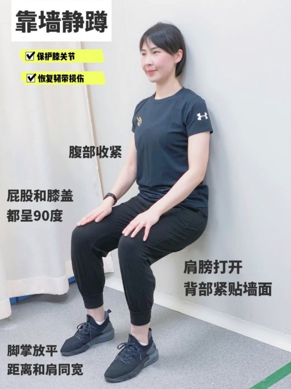 除了頸部、背部之外,臀腿、腰腹也是很容易囤積脂肪的位置,我們可以透過「靠牆靜蹲」來改善這個問題!腹部收緊、屁股和膝蓋呈90度垂直、肩膀打開、背部緊貼牆面,腳掌採實地面、保持與肩同寬距離,維持靜蹲動作60秒。