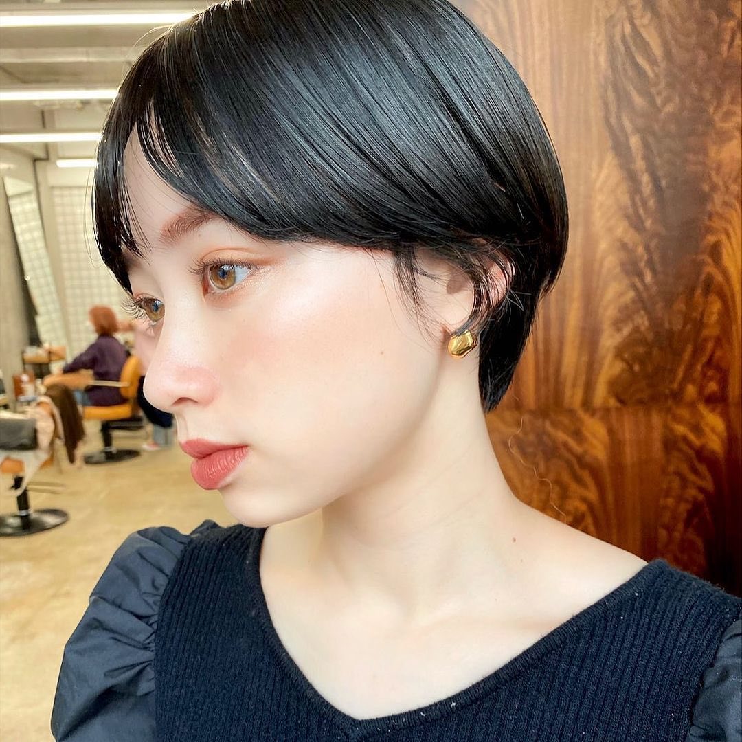 深髮色顯白且凸顯五官立體度,是亞洲女孩的良配~不過該怎麼剪得不過於無聊?今年也可將日系蘋果頭收入清單中!日系蘋果頭著重於後腦杓的圓潤弧度,同時借助長瀏海的修飾,黑髮色的加乘特別顯小臉!