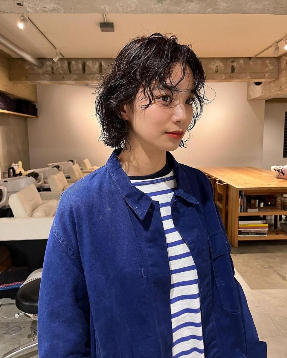 溫柔女孩注意了!從2022年延續至今年,韓系梨花燙依舊是款百搭不失誤的好選擇!不論是落於耳下的長度,抑或者其切鎖骨的中短髮,於頭髮中段至尾段處燙上一點大輪廓的水波弧度,並借助髮蠟抓鬆,而後搭配法式瀏海,溫柔且很顯女人味呢!