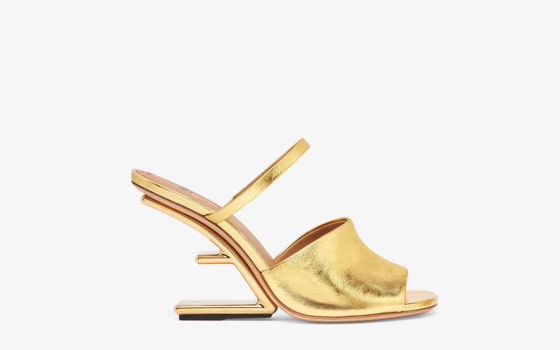 創意總監Kim Jones與第三代傳人Silvia Venturini Fendi,把經典的FF logo 360度旋轉過來,有趣地放置在鞋跟上,變成了這款「First」高跟涼鞋,也跟著穿上金色外衣,相信2023會好運到!(參考價格:NT$47,000)