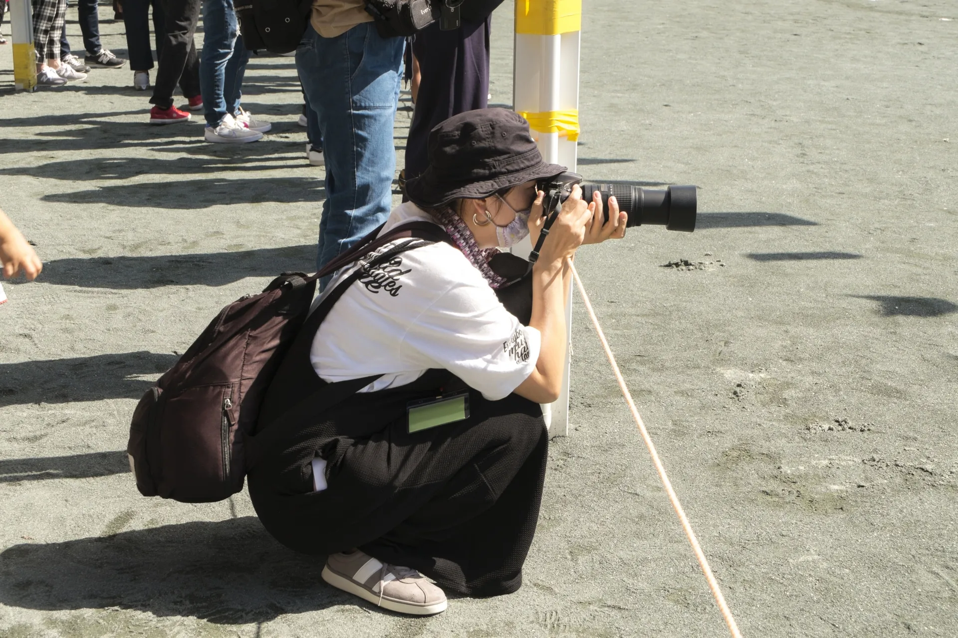 跪姿拿相機/出自 Photo-ac